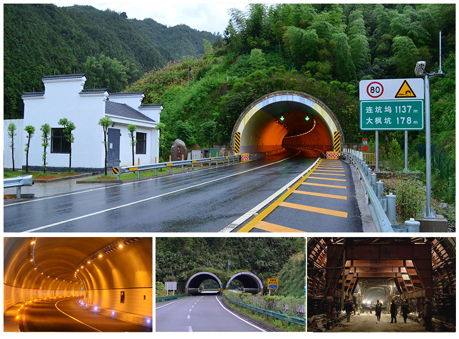 公司公路隧道工程代表型項目有:黃衢南高速連坑塢隧道、楓嶺頭隧道、大楓坑隧道、黃塔桃高速桃林隧道、古樓隧道、杭新景高速東嶺隧道、山頭目隧道、山坑頭隧道、寧績高速虹龍隧道及黃山龍門嶺隧道等。